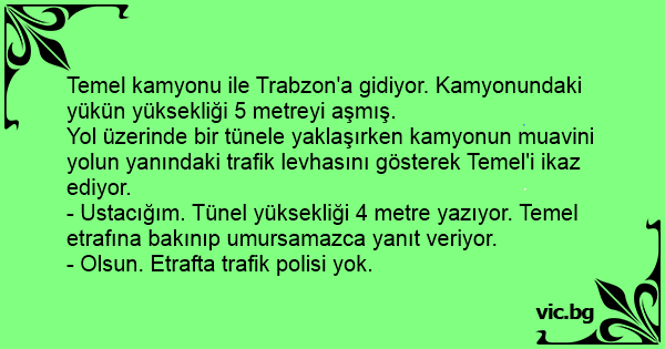 - Ustacığım. Tünel yüksekliği 4 metre yazıyor. Temel etrafına bakınıp umursamazca yanıt veriyor.