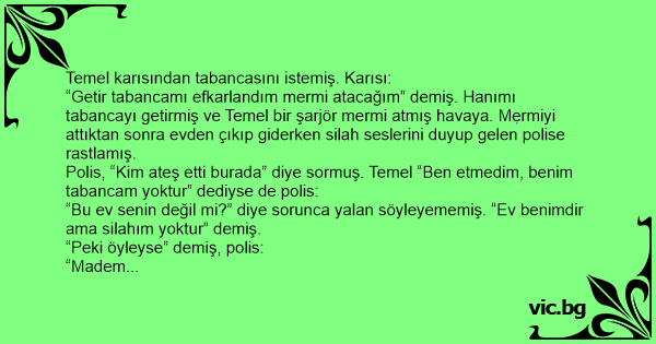 Temel karısından tabancasını istemiş. Karısı: