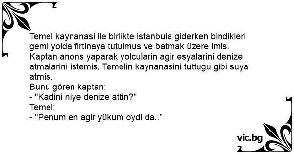Temel kaynanasi ile birlikte istanbula giderken bindikleri gemi yolda firtinaya tutulmus ve batmak üzere imis.