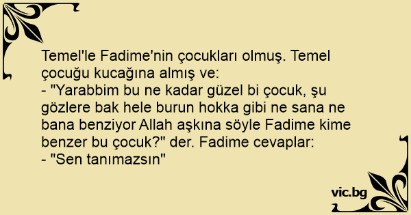 - "Yarabbim bu ne kadar güzel bi çocuk, şu gözlere bak hele burun hokka gibi ne sana ne bana benziyor Allah aşkına söyle Fadime kime benzer bu çocuk?" der. Fadime cevaplar: