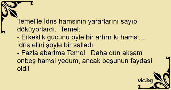 Temel'le İdris hamsinin yararlarını sayıp döküyorlardı. Temel: