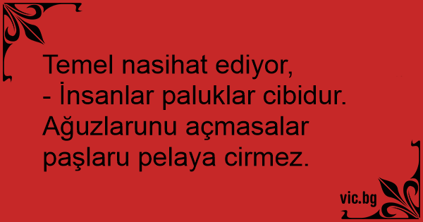 - İnsanlar paluklar cibidur. Ağuzlarunu açmasalar paşlaru pelaya cirmez.