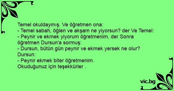 - Peynir ve ekmek yiyorum öğretmenim, der Sonra öğretmen Dursun'a sormuş: