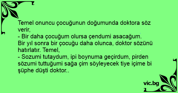 Bir yıl sonra bir çocuğu daha olunca, doktor sözünü hatırlatır. Temel,