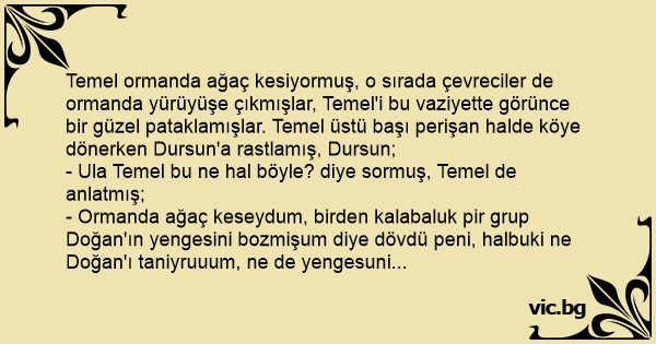 - Ula Temel bu ne hal böyle? diye sormuş, Temel de anlatmış;