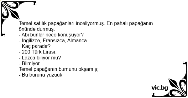 Temel satılık papağanları inceliyormuş. En pahalı papağanın önünde durmuş:
