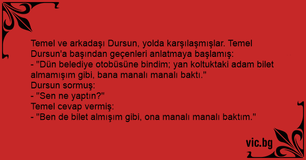 - "Dün belediye otobüsüne bindim; yan koltuktaki adam bilet almamışım gibi, bana manalı manalı baktı."