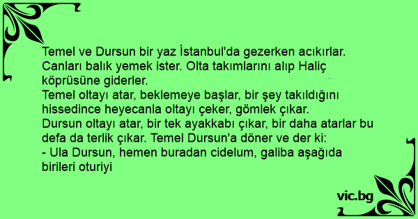 Temel ve Dursun bir yaz İstanbul'da gezerken acıkırlar. Canları balık yemek ister. Olta takımlarını alıp Haliç köprüsüne giderler.