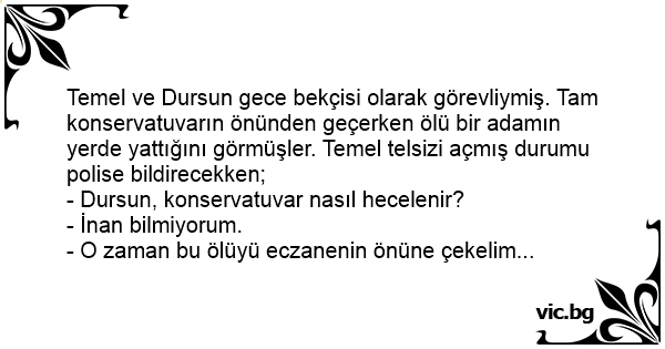 Temel ve Dursun gece bekçisi olarak görevliymiş. Tam konservatuvarın önünden geçerken ölü bir adamın yerde yattığını görmüşler. Temel telsizi açmış durumu polise bildirecekken;