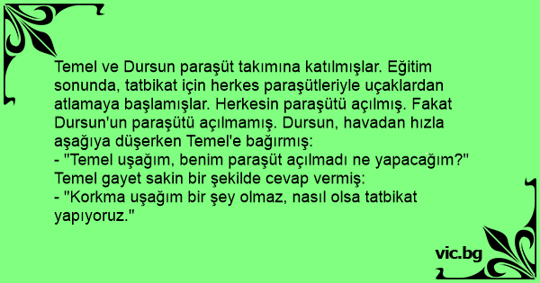 - "Temel uşağım, benim paraşüt açılmadı ne yapacağım?"