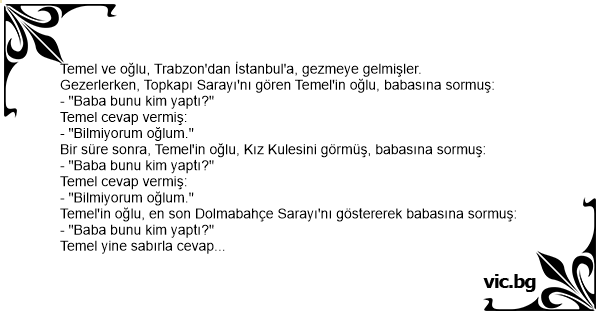 Temel'in oğlu, en son Dolmabahçe Sarayı'nı göstererek babasına sormuş:
