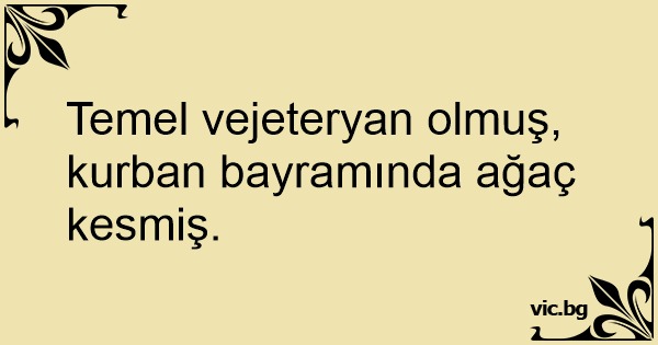 Temel vejeteryan olmuş, kurban bayramında ağaç kesmiş.