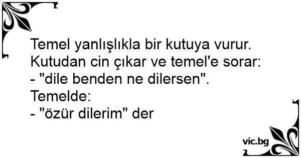 Temel yanlışlıkla bir kutuya vurur. Kutudan cin çıkar ve temel'e sorar: