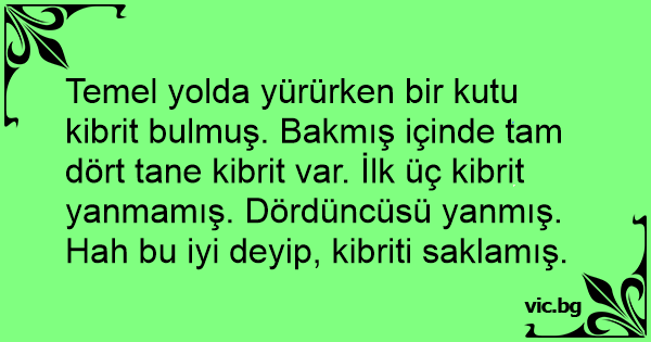 Temel yolda yürürken bir kutu kibrit bulmuş. Bakmış içinde tam dört tane kibrit var. İlk üç kibrit yanmamış. Dördüncüsü yanmış. Hah bu iyi deyip, kibriti saklamış.