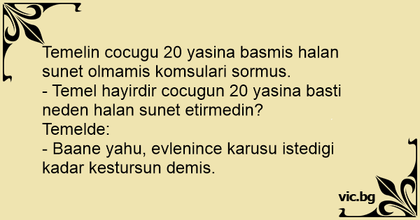 Temelin cocugu 20 yasina basmis halan sunet olmamis komsulari sormus.