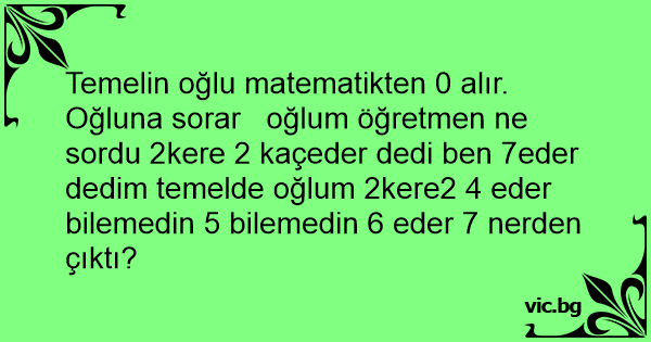 Oğluna sorar oğlum öğretmen ne sordu 2kere 2 kaçeder dedi ben 7eder dedim temelde oğlum 2kere2 4 eder bilemedin 5 bilemedin 6 eder 7 nerden çıktı?