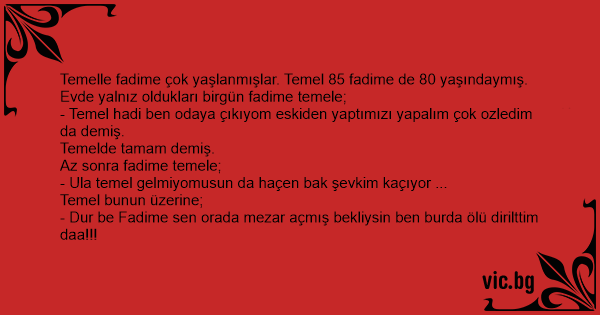 - Temel hadi ben odaya çıkıyom eskiden yaptımızı yapalım çok ozledim da demiş.