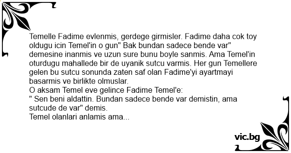 Temelle Fadime evlenmis, gerdege girmisler. Fadime daha сок toy oldugu icin Temel'in o gun" Bak bundan sadece bende var" demesine inanmis ve uzun sure bunu boyle sanmis. Ama Temel'in oturdugu mahallede bir de uyanik sutcu varmis. Her gun Temellere gelen bu sutcu sonunda zaten saf olan Fadime'yi ayartmayi basarmis ve birlikte olmuslar.
