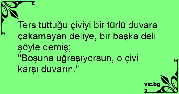 Ters tuttuğu çiviyi bir türlü duvara çakamayan deliye, bir başka deli şöyle demiş;