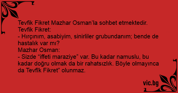 - Sizde “iffeti maraziye” var. Bu kadar namuslu, bu kadar doğru olmak da bir rahatsızlık. Böyle olmayınca da Tevfîk Fikret” olunmaz.