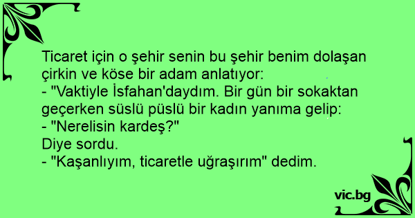 Ticaret için o şehir senin bu şehir benim dolaşan çirkin ve köse bir adam anlatıyor: