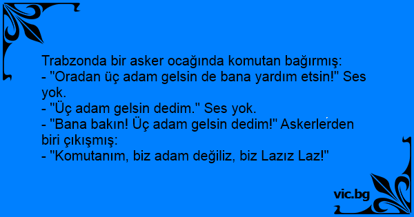 - "Komutanım, biz adam değiliz, biz Lazız Laz!"