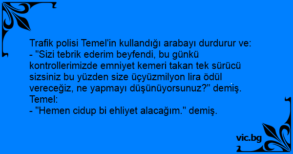 Trafik polisi Temel'in kullandığı arabayı durdurur ve: