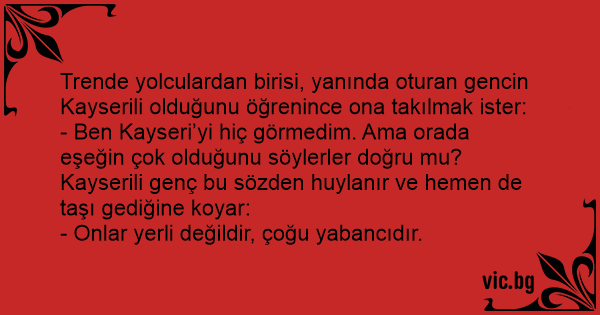 Trende yolculardan birisi, yanında oturan gencin Kayserili olduğunu öğrenince ona takılmak ister: