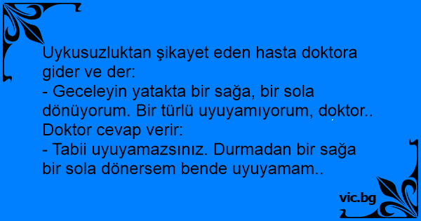 Uykusuzluktan şikayet eden hasta doktora gider ve der: