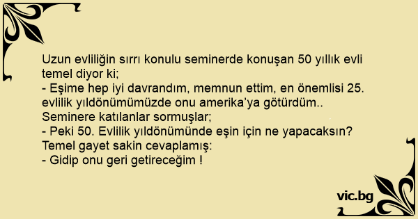 Uzun evliliğin sırrı konulu seminerde konuşan 50 yıllık evli temel diyor ki;