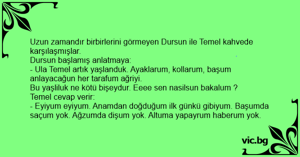 Bu yaşliluk ne kötü bişeydur. Eeee sen nasilsun bakalum ?