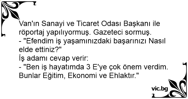 Van'ın Sanayi ve Ticaret Odası Başkanı ile röportaj yapılıyormuş. Gazeteci sormuş.