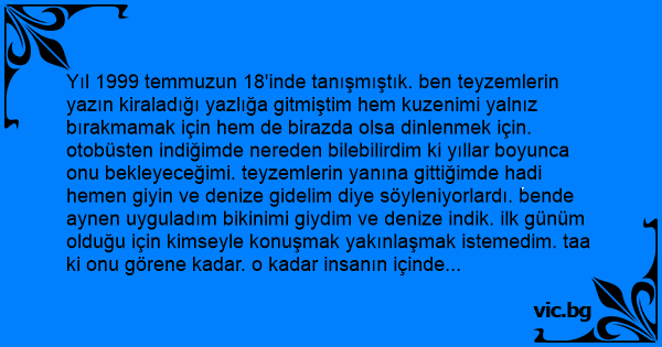Yıl 1999 temmuzun 18'inde tanışmıştık. ben teyzemlerin yazın kiraladığı yazlığa gitmiştim hem kuzenimi yalnız bırakmamak için hem de birazda olsa dinlenmek için. otobüsten indiğimde nereden bilebilirdim ki yıllar boyunca onu bekleyeceğimi. teyzemlerin yanına gittiğimde hadi hemen giyin ve denize gidelim diye söyleniyorlardı. bende aynen uyguladım bikinimi giydim ve denize indik. ilk günüm olduğu için kimseyle konuşmak yakınlaşmak istemedim. taa ki onu görene kadar. o kadar insanın içinde dikkatimi çekmeyi başarmıştı. uzun süre bakıştık fakat o gün hiç konuşmadık. zaten gözlerimiz anlatmak istediklerimizi anlatmıştı bile. akşam olduğunda yemeğimizi yedikten sonra kuzenim bana kara burunun güzel ve bir o kadarda özel yerlerini gezdirdi. sonra diskoya gittik. tabi içimizde kurt kaynıyor diskoya girdiğimizde çok kalabalık bir ortamla karşılaştık. adım atacak kımıldayacak yer yoktu tabiri caizse iğne atacak yer yoktu. daha sonra kuytu bir köşede oturacak bir yer bulduk kendimize. ben etrafımı seyrediyordum gözüm dj kabinine takıldı. o loş ışıkların arasında beyaz bir t - shirt giymiş sanki ben buradayım aramana gerek yok dercesine bana bakıyordu. öğlen denizde gördüğüm yakışıklıyı bir daha göremeyeceğim diye üzülürken onun ayağına kadar gitmişim haberim yok. burada aynı yerde olduğumuza inanamadım bir ara acaba o mu diye tereddüte düştüm. hem dans ediyor hem de gözlerinden gözlerimi alamıyordum. onun bana baktığına inanamıyordum ama evet o bana bakıyordu. bir ara çok yorulduğumu hissettim ve lavaboya doğru ilerledim. ben o kadar insan içinden ilerleyene kadar o çoktan orada kapının önünde bekliyordu bile. ona doğru yaklaşırken kalp atışlarım daha da hızlandı ve nihayet onun yanındaydım. ya tanışacaktım yada müsaade isteyip lavaboya girecektim. ama onun o güzel gözleriyle bana bakmasına dayanamadım. nihayet tanıştık adının Volkan olduğunu ve sezonluk burada çalıştığını öğrendim. çok mutlu olmuştum çünkü buradan ayrılana kadar onu görecektim. ertesi gün öğlen sahilde buluşmak üzere yanından ayrıldım. saatin nasıl geçtiğini anlayamadım bile, eve gidip hemen yattık ama uyu uyuyabilirsen bakalım onu düşünmekten gözüme uyku girmiyordu. yarın onunla konuşacağım konuları tekrar gözden geçirirken uyuyakalmışım. sabah kalktığımda saat 10:00 olmuştu. hemen kalkıp kahvaltı yapıp aşağıya indim. buluşacağımız vaktin gelmesini bekliyordum sanki bir ömür beklemek gibi geliyordu. ama sadece yarım saat geçmişti. ben güneşlenirken biri güneşimin önüne geçti ve merhaba dedi. onun sesini duyar duymaz ayağa kalktım. bende merhaba dedim. daha sonra yanıma oturdu ve konuşmaya başladık ailesinin Kocaeli'de olduğunu ve buraya çalışmaya geldiğini söyledi bende okula gittiğimi ve yaz tatili için teyzemlerin yanına geldiğimi söyledim o bir ara iyi ki gelmişsin dedi. ben efendim diyene kadar gülüşmeye başladık. aradan iki gün geçtikten sonra nihayet beklediğim soruyu sordu. erkek arkadaşın var mı? benimle çıkar mısın ? inanamıyordum o güzel gözlüm benimle birlikte olmak istiyordu. ben de teklifini kabul ettim. her dakikamız her saniyemiz birlikte geçiyordu. geceleri teyzemden biraz daha izin alarak sahile iniyorduk. sanki bu zamana kadar konuşacak kimsemiz yokmuş gibi bütün başımızdan geçen acı, tatlı, komik olayları birbirimize heyecanla anlatıyorduk. bu günlerin hiç bitmemesini istiyordum. günler haftalar hep onunla dertleşerek geçiyordu. onu bir an olsun aklımdan çıkaramıyordum. 13 Ağustos'da onu evinden aradılar annesinin kalp krizi geçirdiğini ve hemen Kocaeli'ne gelmesini söylediler dünyam yıkılmıştı aşkımdan güzel gözlümden ayrılacaktım ama 2 günde geleceği duygusu beni birazda olsa üzüntümden arındırıyordu. otobüse yer bulamamıştık bende gitmeyi çok istiyordum ama bulunduğum şartlar buna el vermiyordu. ailesini görmesem de her gün kız kardeşöyle telefonda görüşüyorduk. aşkım 15 Ağustosa yer buldu ve gitti. onu uğurlarken sanki bir daha gelemeyecek gibi bir duygu vardı içimde ama etrafımdaki herkes benim sadece ondan ayrıldığım için böyle düşündüğümü söylüyorlardı. kimse bilemezdi ki ondan tamamen ayrılacağımı. vardığında beni aradı ben bir gün daha gecikeceğim deyince içime garip ama kötü düşünceler yerleşti sanki hissedebiliyordum benden tamamen uzaklaştığını ve bir daha gelemeyeceğini. ve 17 Ağustos Marmara depremi. gece korku dolu rüyalar görerek uyandım. terlemiştim onu aramak istedim ama rahatsız etmekte istemedim hastanedeydi annesi ameliyat olacaktı. keşke arasaydım. kalkıp bir sigara yaktım televizyonu açtım o saatte televizyonda bir şey olmadığını bildiğim halde sanki biri beni televizyona doğru itiyordu ve o korkunç haberi duydum. deprem olmuştu ve birçok ev yerle bir olmuştu. binlerce insan ölmüştü. ama o ölenlerin içinde benim güzel gözlüm olmasın diye dualar ediyordum. telefon hatları kilitlenmişti ulaşamıyordum. kahrolmuştum keşke telefon açıp sesini duysaydım. kendimi hırpalamaktan başka bir şey yapamıyordum ağlamakla sabahı sabah ettim tabi yine ulaşamadım. merakla ondan bir haber bekledim saatlerce ama haber yoktu. herkes beni teselli ediyordu. ama ben sadece onu istiyordum. bekledim. sadece onu bekledim. ondan bir telefon bekledim. ama yoktu ondan bir ses seda çıkmıyordu. tam 2 gün sonra 19 Ağustos günü öğlen 14:30 sıralarında telefonum çaldı. hemen açtım telefondaki ses hiçte yabancı değildi ama o değildi. kız kardeşi telefonda ağlıyordu. depremde volkanı kaybettiklerini ve metin olmamı söyledi. beynimden vurulmuşa dönmüştüm o yoktu artık yanımda güzel gözlüm yanımda değildi. günlerce ondan bir haber beklerken ölüm haberini almıştım ha