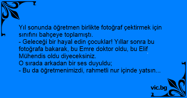 Yıl sonunda öğretmen birlikte fotoğraf çektirmek için sınıfını bahçeye toplamıştı.