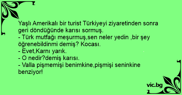 Yaşlı Amerikalı bir turist Türkiyeyi ziyaretinden sonra geri döndüğünde karısı sormuş.