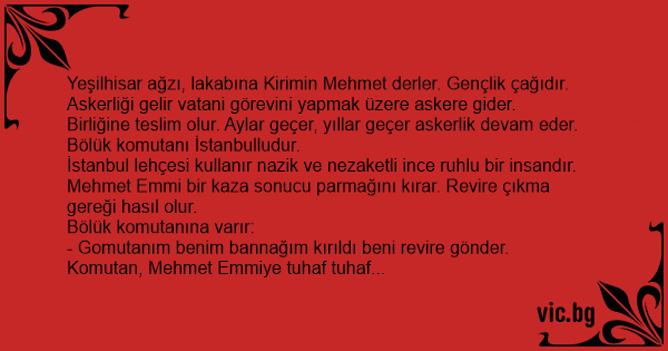 Yeşilhisar ağzı, lakabına Kirimin Mehmet derler. Gençlik çağıdır.