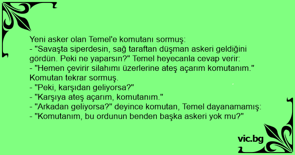 - "Arkadan geliyorsa?" deyince komutan, Temel dayanamamış: