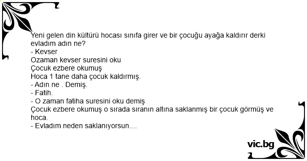Yeni gelen din kültürü hocası sınıfa girer ve bir çocuğu ayağa kaldırır derki evladım adın ne?