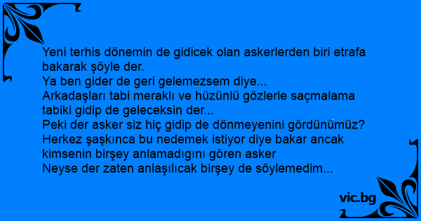 Yeni terhis dönemin de gidicek olan askerlerden biri etrafa bakarak şöyle der.