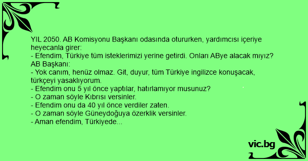 - Yok canım, henüz olmaz. Giт, duyur, tüm Türkiye ingilizce konuşacak, türkçeyi yasaklıyorum.