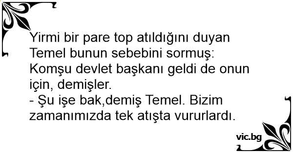 - Şu işe bak,demiş Temel. Bizim zamanımızda tek atışta vururlardı.