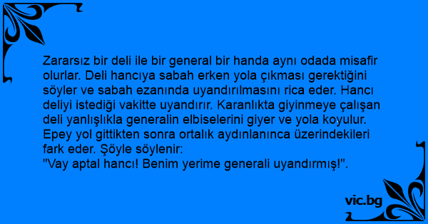 "Vay aptal hancı! Benim yerime generali uyandırmış!".