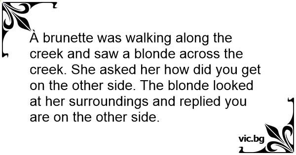 À brunette was walking along the creek and saw a blonde across the creek. She asked her how did you get on the other side. The blonde looked at her surroundings and replied you are on the other side.