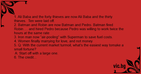 1. Ali Baba and the forty thieves are now Ali Baba and the thirty thieves. Ten were laid off.