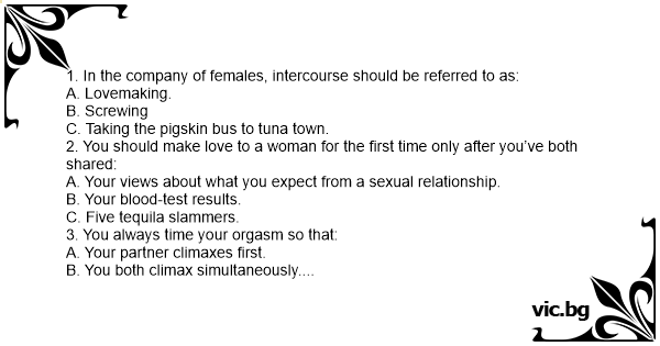 1. In the company of females, inтеrсоursе should be referred to as: