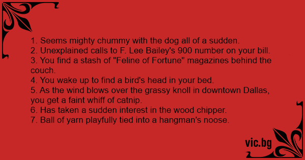 3. You find a stash of "Feline of Fortune" magazines behind the couch.