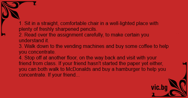 13. Sit in a straight, comfortable chair in a clean, well-lighted place with plenty of freshly sharpened pencils.
