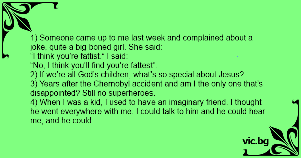 1) Someone came up to me last week and complained about a joke, quite a big-воnеd girl. She said: