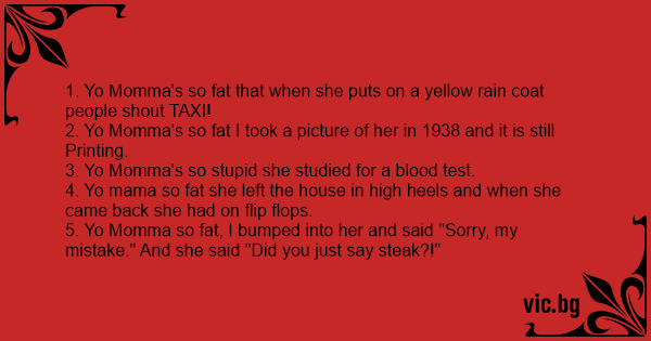 1. Yo Momma's so fат that when she puts on a yellow rain coat people shout TAXI!