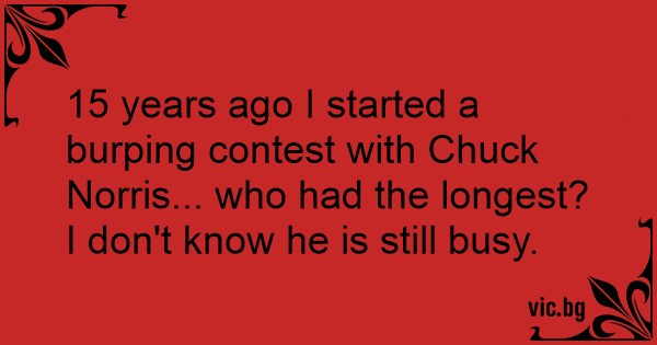 15 years ago I started a burping contest with Chuck Norris... who had the longest?